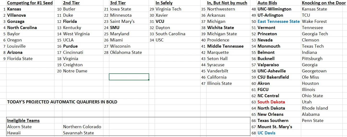 Teams in Bold are Projected Conference Champions.  Conference Champions in their school color are newly projected league champions.