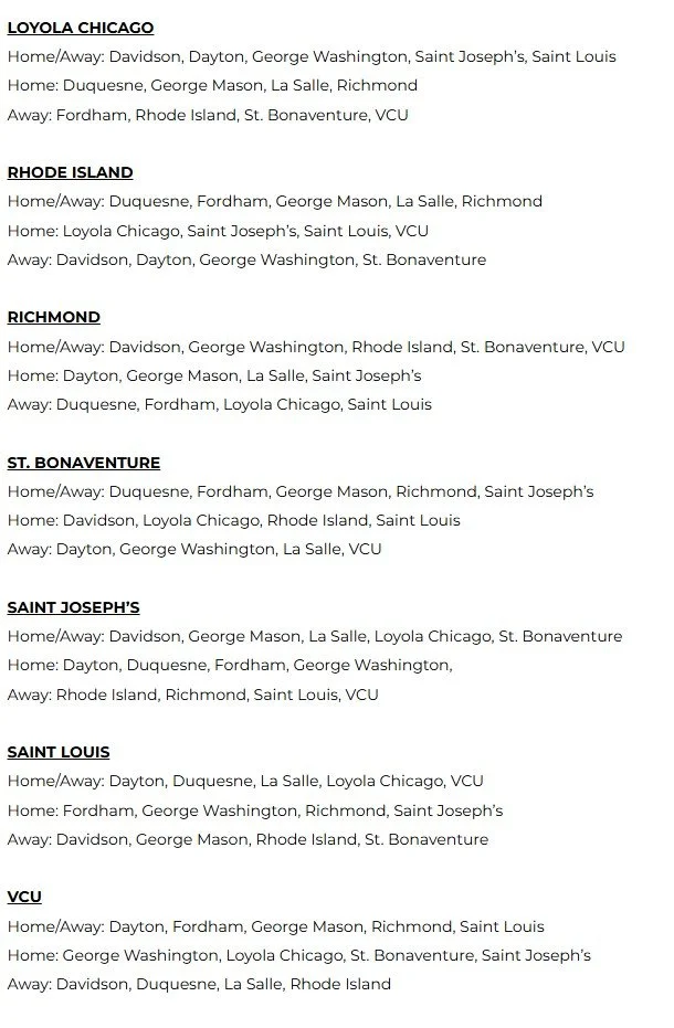 The complete 2025-26 conference schedule with dates and times, as well as national television information, will be released at a later date. The 2026 Atlantic 10 Men’s Basketball Championship will be played March 11-15 at PPG Paints Arena in Pittsburgh, PA.